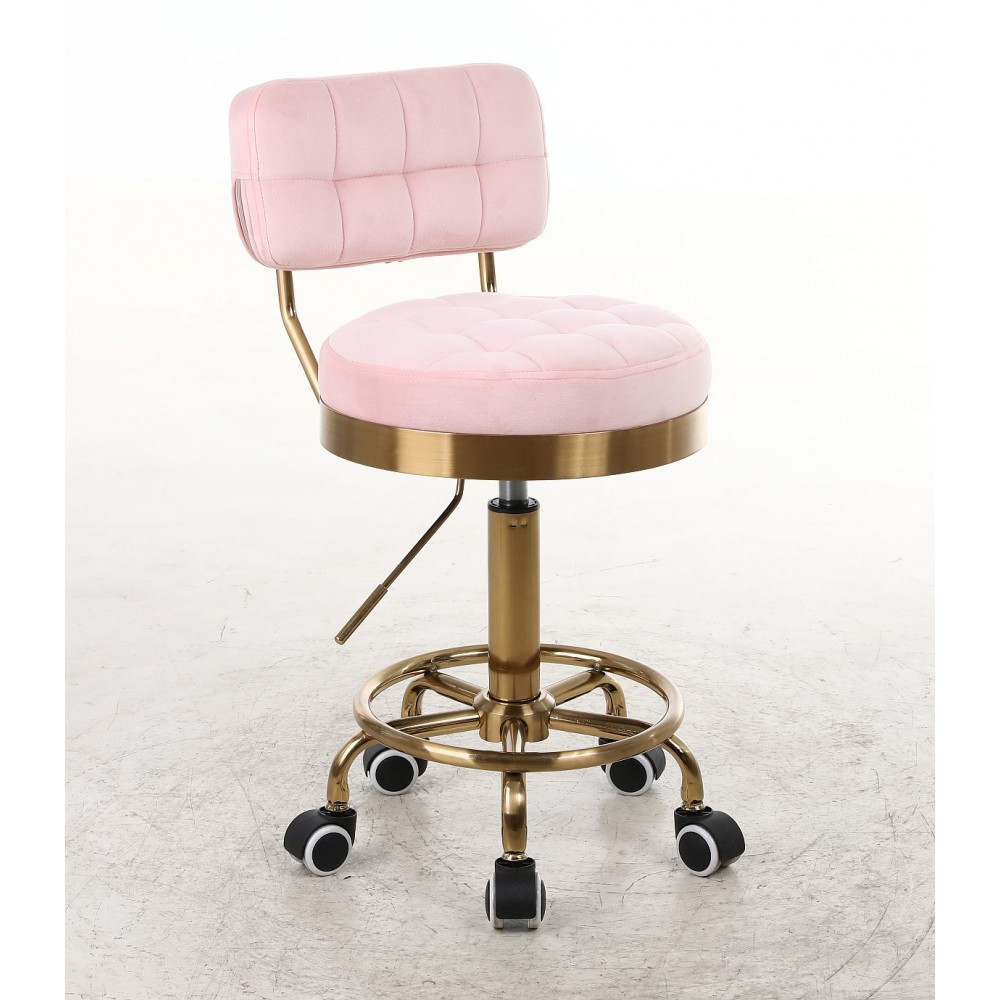 Перукарське крісло стілець майстра HR636K велюр рожевий золота основа